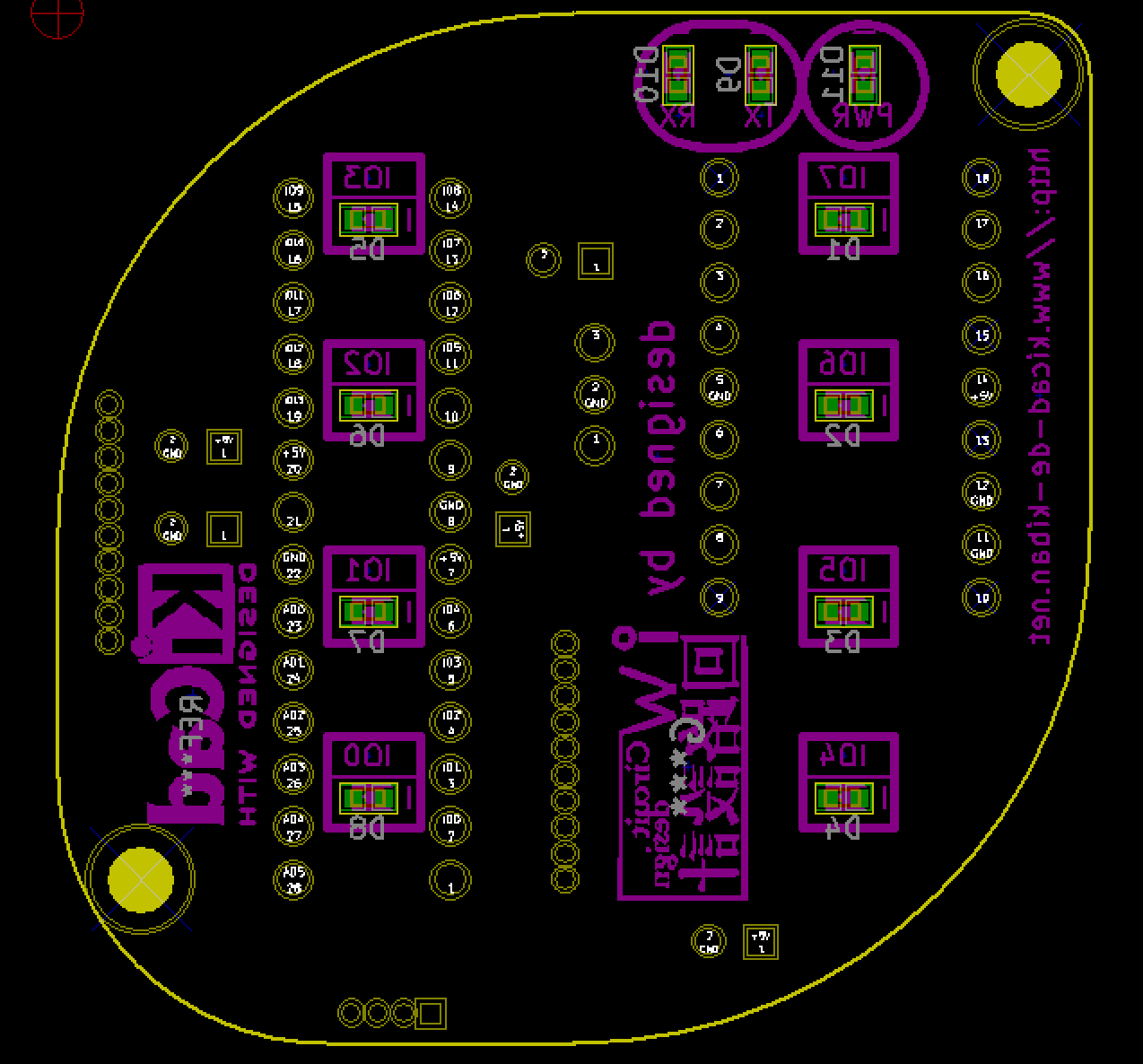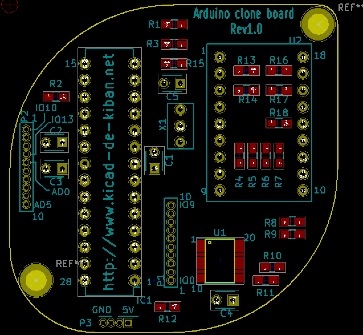 配線まで出来ましたので、あとはシルク表示の位置調整を行います。- シルクが他のフットプリントなどに重ならないように見やすい位置に移動します。
