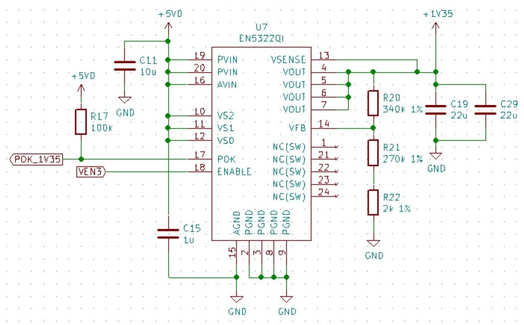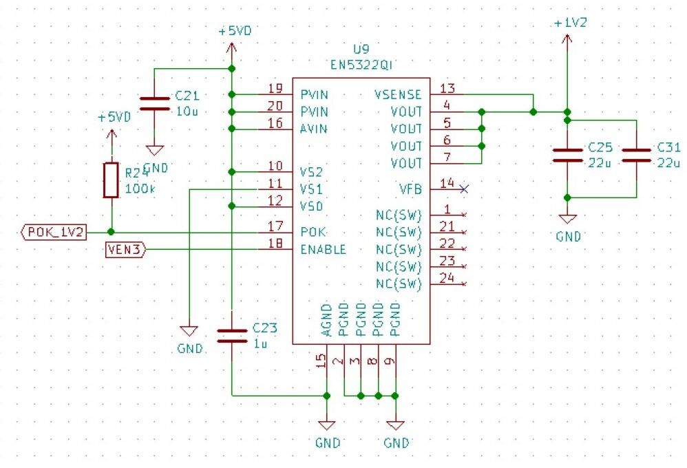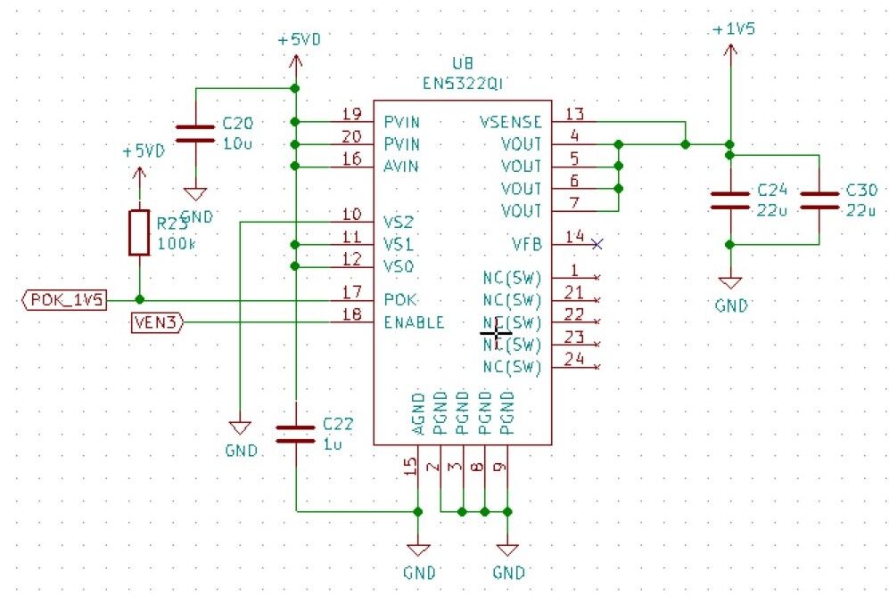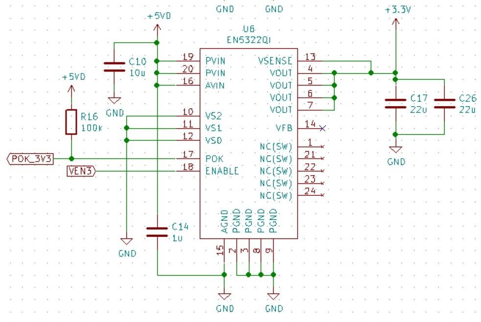 以上の内容から、各電源のEN5322周辺回路は下記のような回路にしました。・3.3V電源