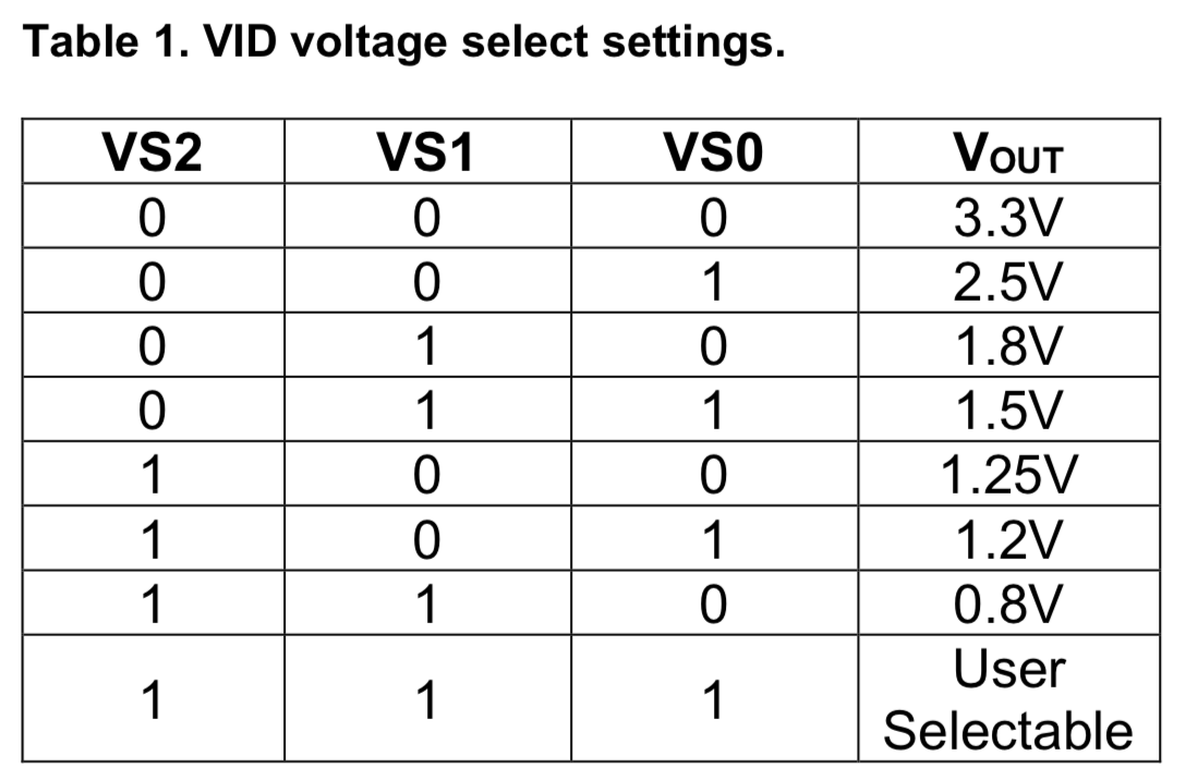 ・1.0Vと1.35Vは設定ピンを全て1(Hレベル)に設定した上で、外部抵抗を用いて任意の出力電圧を設定にする形になります