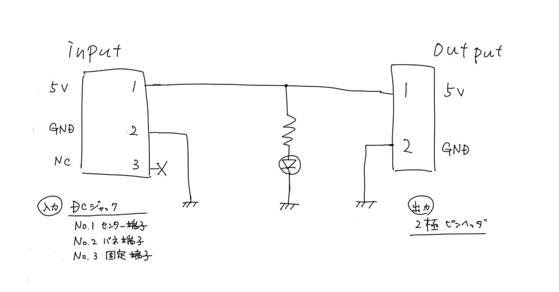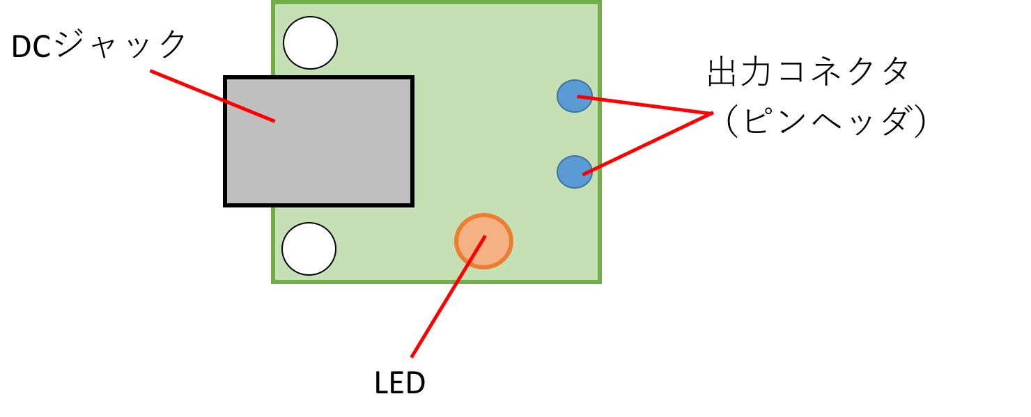DCジャック変換基板を作成するにあたって、どんな基板にするか簡単な仕様を考えます。