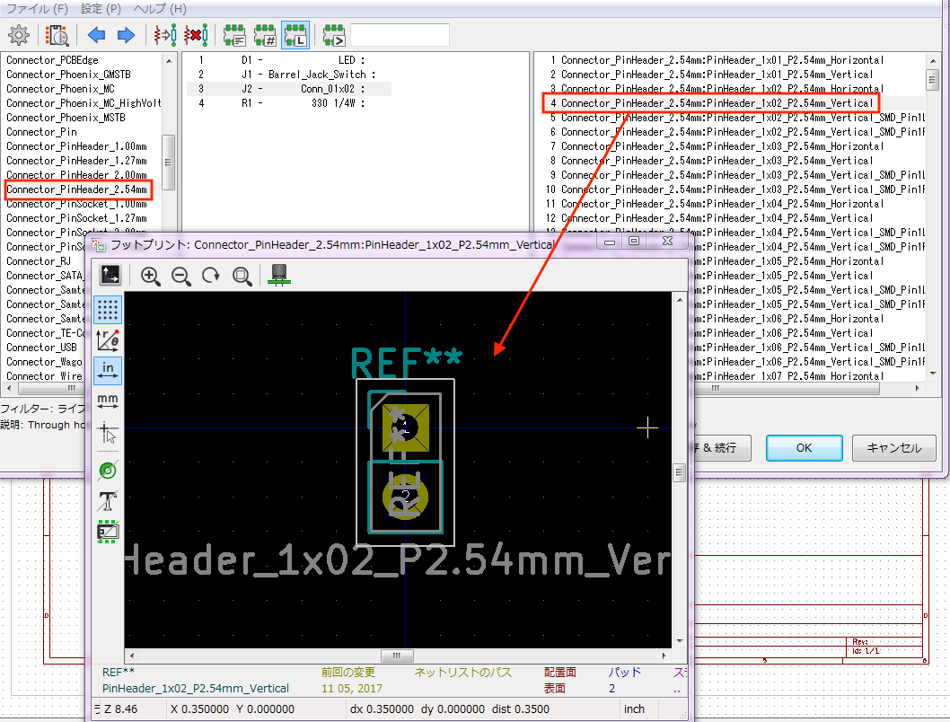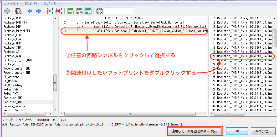 回路シンボルとフットプリントの紐つけを行う