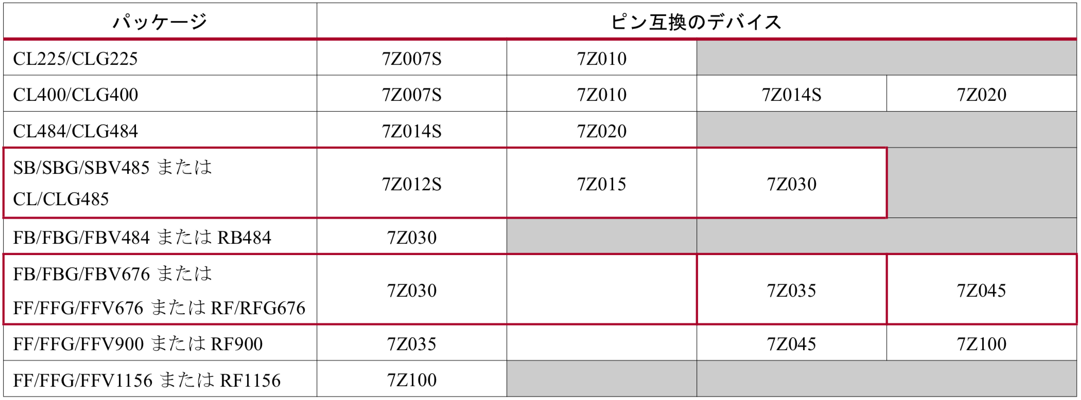 Zynq-7000シリーズでは下記のようなパッケージがあり、同じパッケージであれば型番が異なってもピンの互換性があるようです。